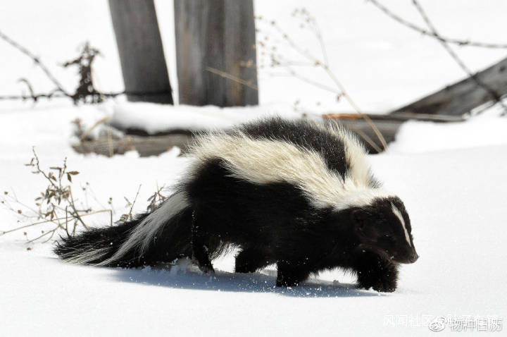雪地裏的臭鼬。圖片:Dan & Lin Dzurisin / Wikipedia
