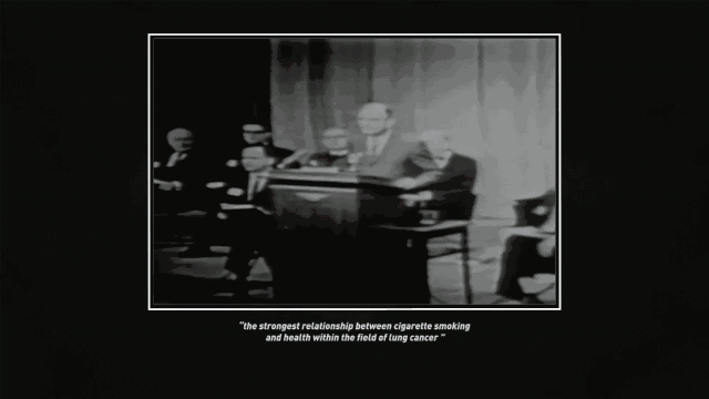 1964 年,美國公共衞生局局長路德·特里發佈年度報告,援引 7000 多項研究,首次認定吸煙導致肺癌,引起軒然大波,一舉逆轉了美國節節攀升的人均香煙消費量。