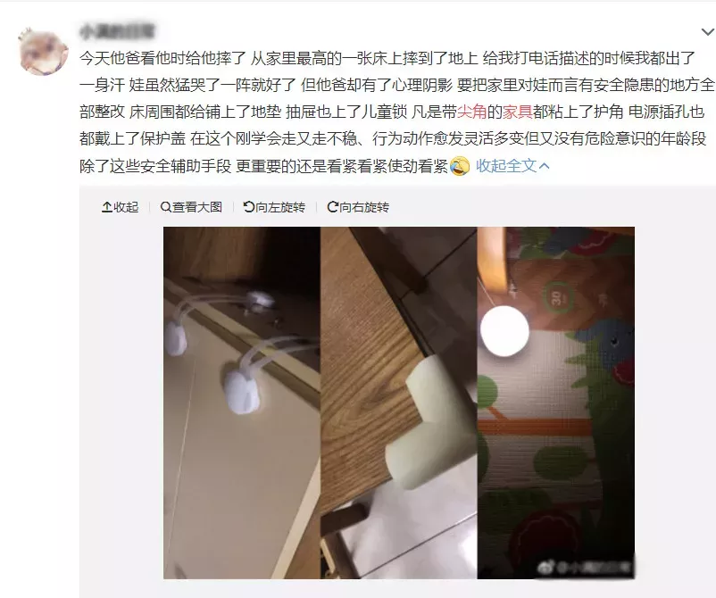 桌子椅子櫃子的尖角是很可能撞傷孩子的。所以有了孩子之後,傢俱帶鋭角的儘量用防撞條、防撞角包起來。