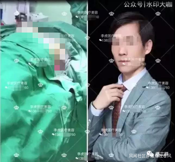 根據張女士提供的一張臨沂蘭山李虎醫療美容診所醫師李虎的朋友圈截圖顯示,一張更新於2018年8月4日上午9時41分的照片,一名女士正躺在手術枱上,似正在做術前準備,而該女士的上半身身體部位直接裸露,尺度頗大。