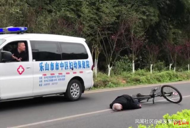 網友拍攝的視頻顯示,事發後一輛樂山市市中區婦幼保健院的救護車駛了過來,周圍很多市民超救護車大喊“你們把大爺拉起走嘛,他流血了”,而司機解釋説,他們是婦幼保健院。圍觀市民説“救人要緊”,司機説,“我們還是要救人的,回去要等到輸血。”