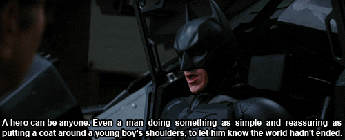 “英雄可以是任何一個人,哪怕只是做一個簡簡單單的動作,比如幫助一個無助的小男孩披上大衣,讓他知道他的人生還沒結束。”