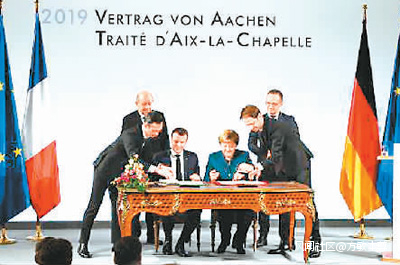 德法之間簽訂的《亞琛條約》,讓歐洲最具影響力的德法“軸心”得到加強,德法兩國表現出一副全面融合自今始的架勢。試圖以推進德法“融合”為藍本,用《亞琛條約》刻劃一個模式和樣板,或者説是樹立一個榜樣、畫一張藍圖:一體化路徑設計是從德法融合始、推至歐盟範圍、再至整個歐洲。