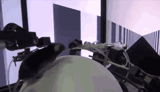 我們真的在小鼠的顱骨上開了一個洞,把探測神經活動的金屬電極插到它的腦中,再把它放在一個虛擬現實的環境下,去看小鼠對於不同視覺環境的反應