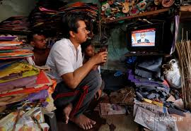 路透社充滿惡意的照片,一個印度小店主正在收看莫迪宣佈反衞星試驗成功消息……