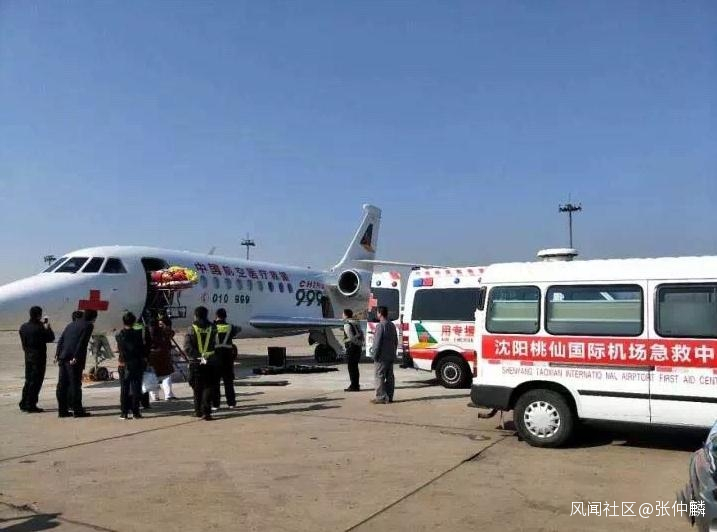 MU551航班備降到北京後,地面人員將發病旅客送往醫院救治