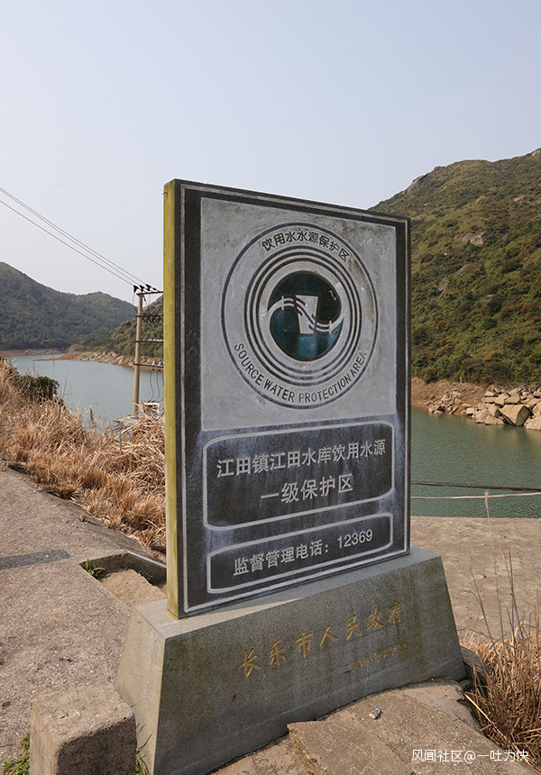 福州市長樂區南陽山上一處水庫旁的“江田鎮江田水庫飲用水源一級保護區”石碑(3月27日攝)。
