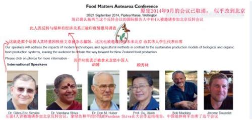 2)2014年在北京的一個非法涉外會議上的國內國外反轉基因運動人士(會議主持人之一為顧秀林),該會議由外國非政府組織基因會資質(NGO Founders)。人民日報海外版紙媒做了報道,後該報道被撤。