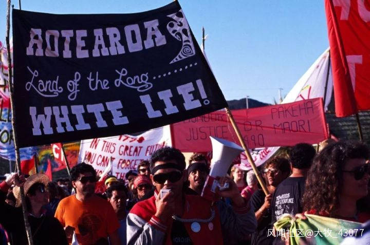 ● 毛利人抗議現場 / 網絡但更重要的是,這一復興運動將本國種族關係的發言權從白人手裏奪了回來。無論過去百年的事實如何,新西蘭的白人通常都會毫不遲疑將本國的種族關係描繪成西方社會最好的案例。隨着毛利人口增長和文化復興,毛利文化才開始真正進入主流社會,雙語環境重新出現在學校,政府及各個公共服務裏。毛利語在1987年被正式承認為官方語言,但也是從1970年代開始,新西蘭官方開始正式宣揚及鼓勵“二元文化社會”。但對歷史陳案的了結中也出現了不少反對之聲。2004年,時任新西蘭主要右翼黨派國家黨黨魁唐納德·布拉什(Don Brash) 在奧克蘭發表演講,直指毛利人受到特殊優待,國家賠償直接導致了毛利人形成了“索賠
