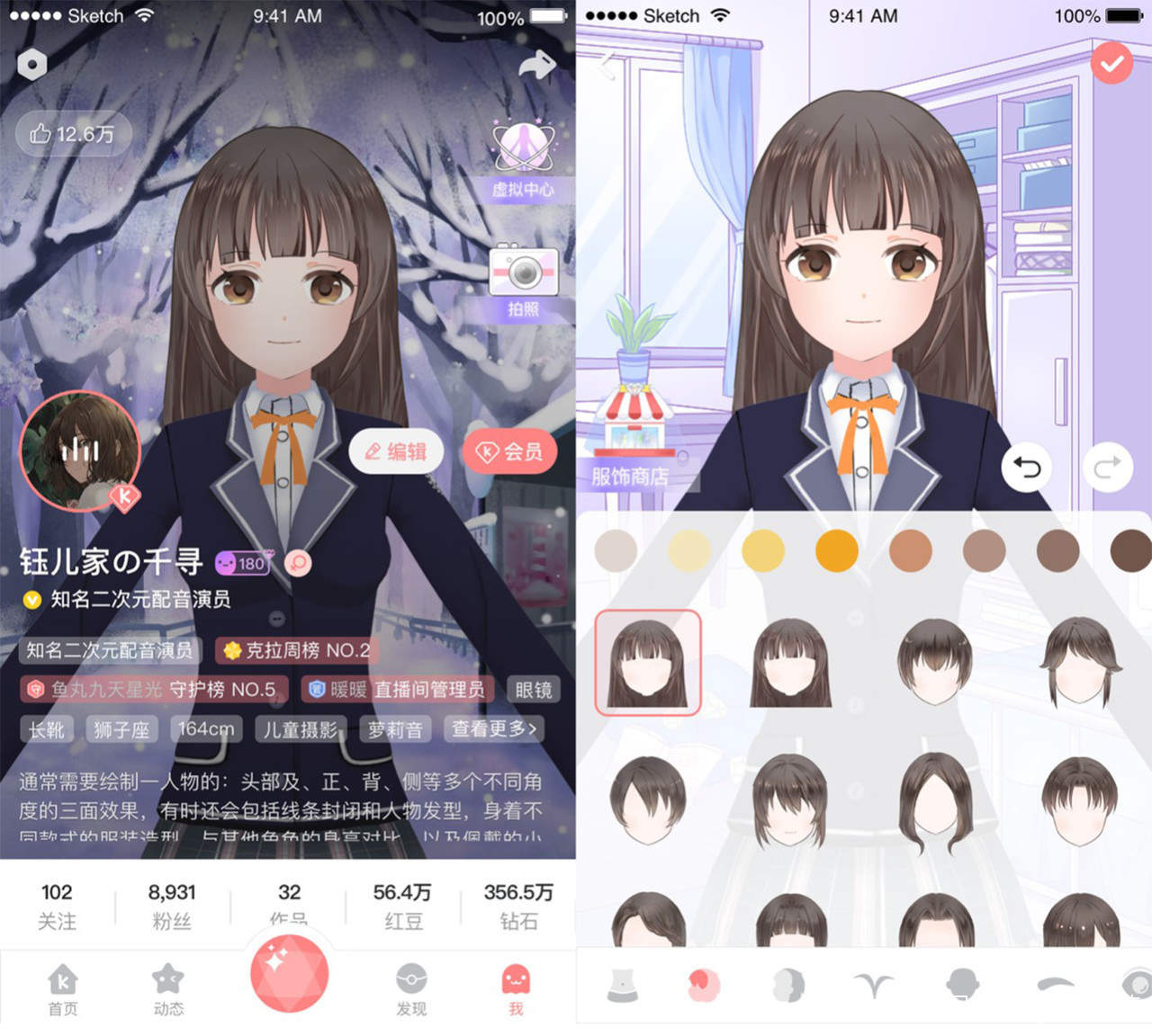 而這些延伸到社區環境中後,虛擬偶像的價值就不僅僅侷限在直播上,通過克拉克拉的興趣羣組,可以將虛擬偶像的IP延伸到如小説、視頻、對話小説、在線聊天室等諸多方面,使之形成更具粘性的同好圈。而且克拉克拉社區中的捏臉系統,可以讓每個人都能夠擁有自己的虛擬身份,完美解決社區中的自身形象問題。