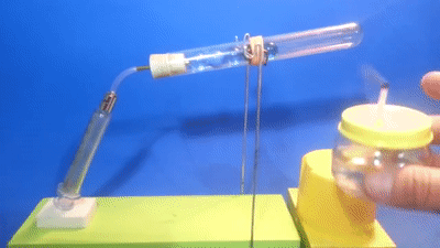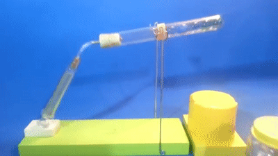 斯特林發動機的主要原理嘛,就是把氣體這種可以壓縮的介質保存在氣缸(我們實驗裏的試管)裏,通過加熱讓氣體膨脹,再冷卻收縮的過程做功。