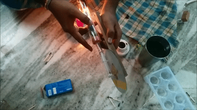 如果你家有不用的CD,還可以和這個小朋友一樣,把針筒連在CD上面,也能轉得飛快——