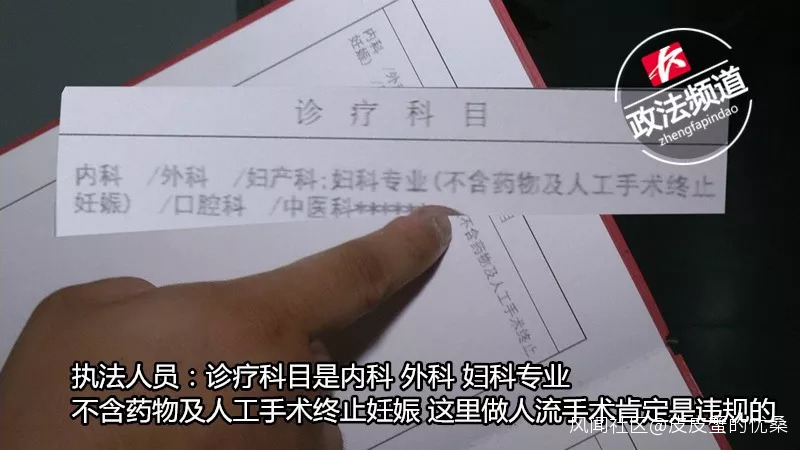 經另一名患者辨認,介紹其來該門診部就診的“熱心大姐”,正是記者此前在醫院拍攝到的疑似“醫托”的女子 門診部違規開展人流手術一名醫生涉嫌非法行醫 執法人員檢查發現,該門診部醫療機構執業許可證上的診療範圍僅為內科、婦產科、口腔科等,其中明確寫到:婦產科的診療範圍不含藥物及人工手術終止妊娠。 而該門診部違規私自給患者進行人流手術,並在門診部大門懸掛計劃生育人流定點醫療單位已明顯違規。