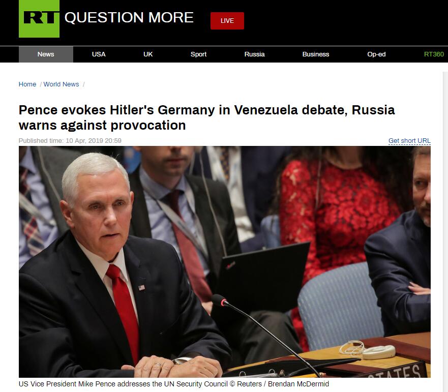 10日在長達20多分鐘的講話中,彭斯呼籲(聯合國)承認瓜伊多為委內瑞拉合法領導人。他敦促安理會採取行動結束馬杜羅政權,還稱現在是時候讓瓜伊多的代表進入聯合國,並驅逐(馬杜羅的)現任代表了。
