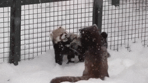 也有人戲稱,看起來賊兮兮的就是小浣熊,萌噠噠的就是小熊貓。畢竟小熊貓是一種連打架都很萌的物種,主要的戰鬥方式就是站起來互相比一比誰高,試圖用自己偉岸的身姿嚇到對方。