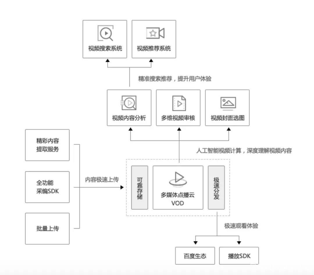 智能小視頻解決方案針對目前市面上的短視頻產品。越來越多創業者正在進入短視頻市場,他們需要有云計算基礎設施作為支撐,百度可以提供相對比較完善的技術服務。