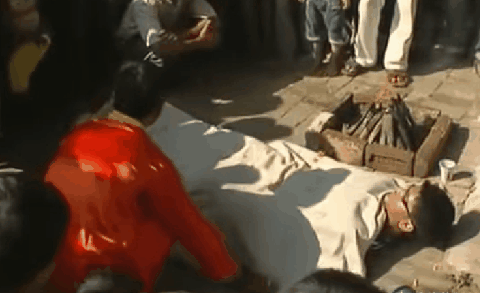 被聖僧一施法,就倒下去了,待會估計還會被救活: