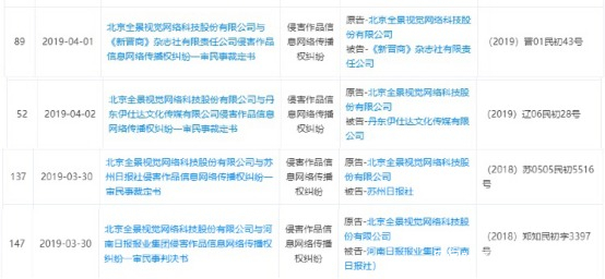 《每日經濟新聞》記者統計發現,進入2019年以來,全景網絡忙的“腳不沾地”兒,幹什麼去了?打官司去了。平均算下來每天11.7起,甚至連元旦那天都有5起法律訴訟產生。全景網絡的開庭公告更是已經排到了2019年8月12日。