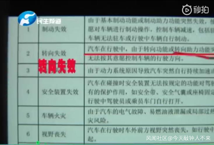 “三包法”上同樣有對何為轉向失效進行進一步的解釋:汽車在行駛中,由於轉向功能或轉向助力功能突然失效,使得駕駛員無法按其意願控制車輛的行駛方向,即為轉向失效。