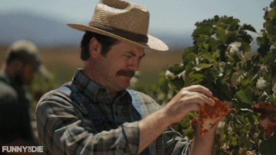 ▲ 喜劇演員 Nick Offerman 帶大家參觀「披薩農場」,圖片來源見水印