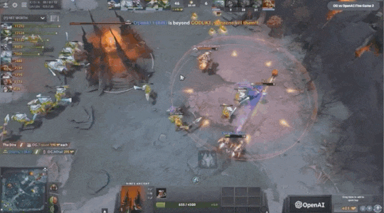 在第一局中,OpenAI前期有略微的劣勢,然後開始發力,到第二局幾乎就是一直碾壓OG。比賽前後期落差太大,不像是職業Dota選手的水平。
