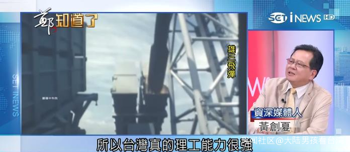 媒體人黃創夏接過主持人的話茬。他先簡單談了談台灣的軍事武器研發,得出了台灣的理工科實力很強的這麼一個結論。