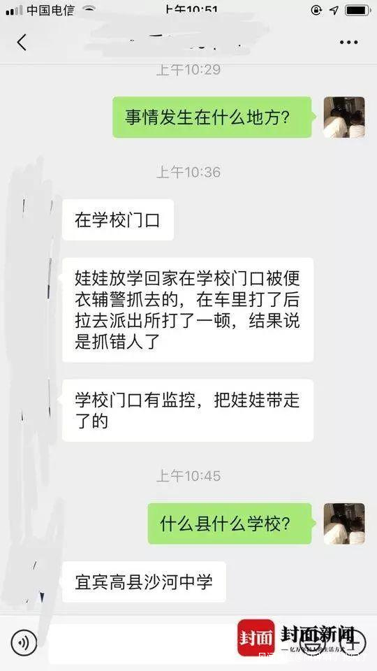 4月12日上午11時左右,封面新聞記者電話聯繫上了網友爆料的被抓學生小明的母親鄭女士,當時,她正和高縣沙河鎮派出所的工作人員陪着小明在醫院做身體檢查。