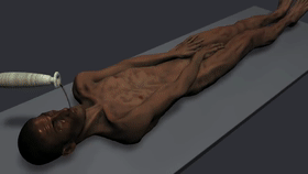 註釋:霍尼吉提夫的身上塗抹有大量松香,保持屍體不腐爛。裹布下大祭司的身體上也安放了護身符、戒指、珠寶,和其他辟邪物質。