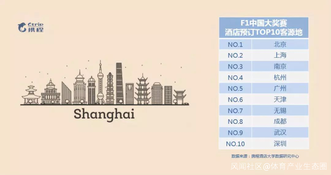 從攜程給出的酒店預定數據顯示,4月12日-14日期間,場館方圓5公里酒店的預訂量環比超過230%,同比增長超過100%,而上賽車場方圓3公里的酒店大賽期間房源幾乎已經全部售罄。