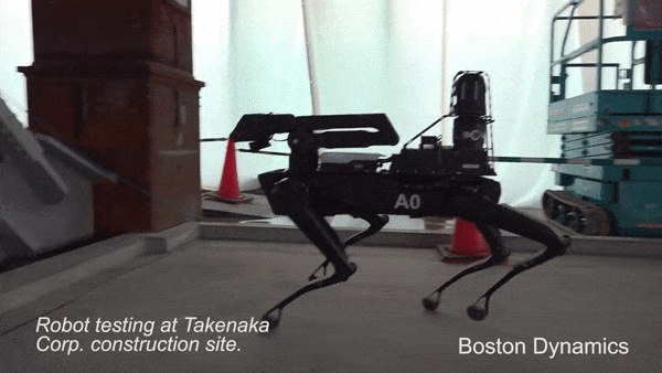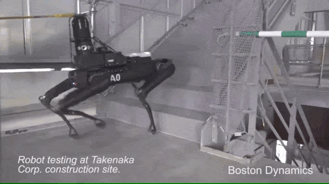 去年10月,Spot就去工地“實習”了,去東京當起了工地檢查員,通過自主導航在工地裏爬上爬下: