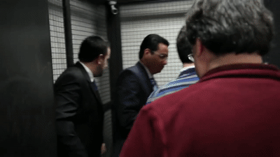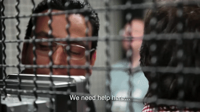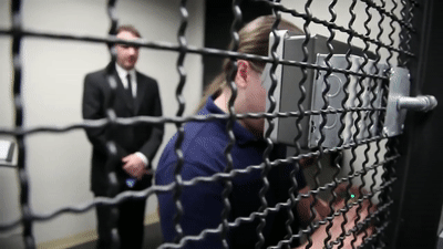 手忙腳亂了6分鐘後,他們想到了解決方法:觸發警報器,用緊急撤離的方式離開安保籠。