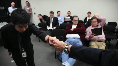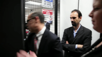進入儀式的房間更加複雜,每次只能進入幾個。ICANN 的高級項目經理Richard Lamb 掃描了虹膜以後,讓所有人進入會場所在的房間。