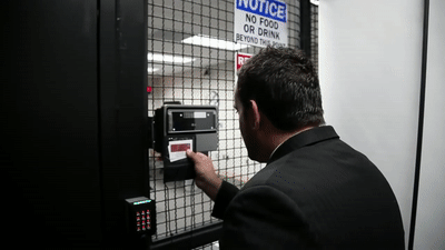 房間的一邊還有一個2.4米*2.4米的安保籠子,安保籠子裏是2個保險箱。保險箱裏存放着智能卡,用智能卡就可以啓動產生主密鑰的機器。