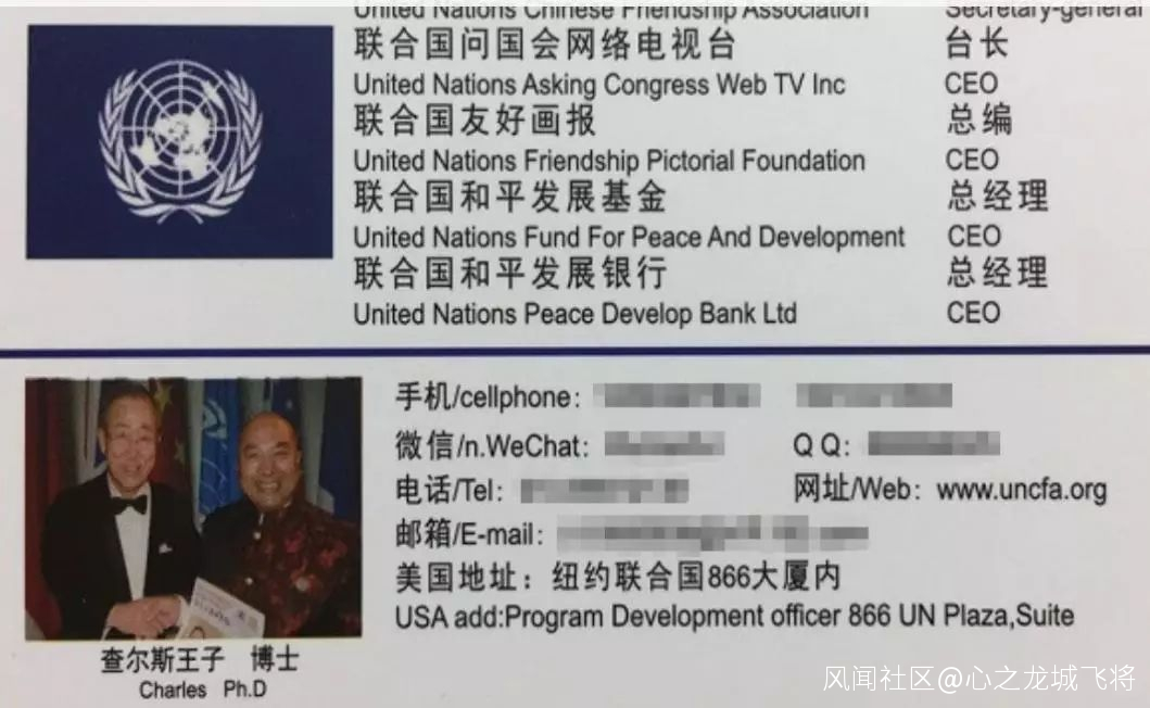 她更不知道的是,收取她13.5萬人民幣的那個查爾斯·李,其實名叫李偉天(又名李崇瑞、王永君),是一個利用在美國註冊的皮包公司在中國行騙的犯罪分子。早在10多年前,他就因為冒充世界銀行和美國納斯達克交易所在中國行騙,而被《南方週末》等媒體多次曝光過。可由於【沒有被國內相關部門的足夠重視】,這個屢次被曝光又屢次“復活”的騙子,又開始打着聯合國的名號行騙,更搖身一變成為所謂的“查爾斯·李博士”,甚至還憑藉這些身份騙到了中國一些不知情的官員的合影……