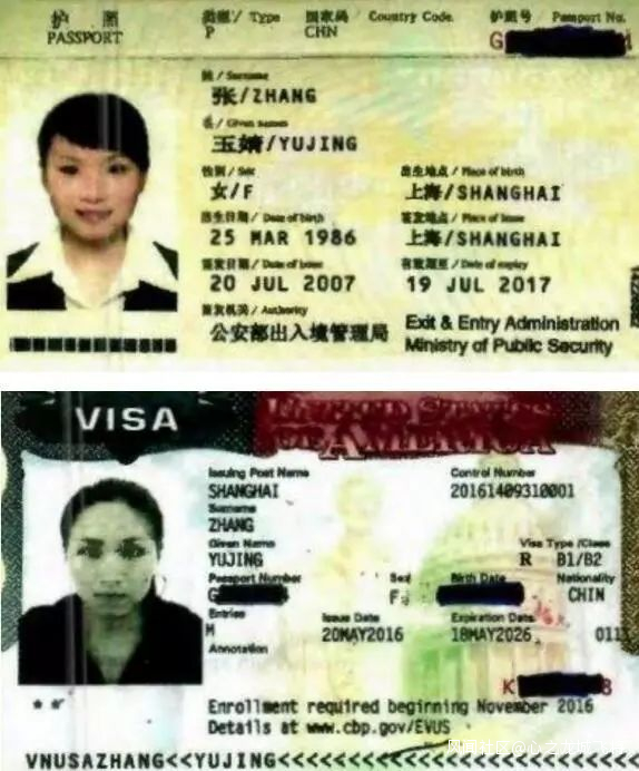 ▲圖為美國媒體公佈的張玉婧的兩本護照和美國簽證,其中第一本已到期,但因為她的美國簽證是2016年獲得的,所以她去美國攜帶了新舊兩本護照。目前她的美國簽證已被吊銷。
