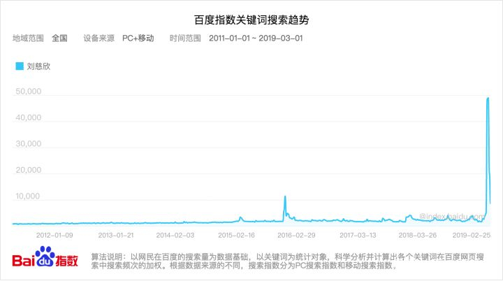 以上兩幅圖分別是“劉慈欣”和“三體”從2012年1月到2019年3月的百度指數,我們籌劃舉辦論壇是什麼時候呢——2014年2月份剛過完年開學的時候,第一個明顯的波峯出現在什麼時候呢——2015年8月《三體》獲得雨果獎的時候。