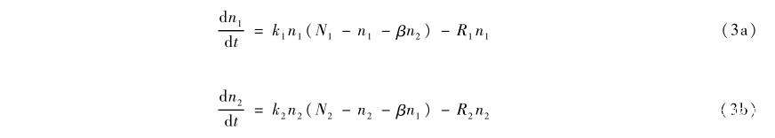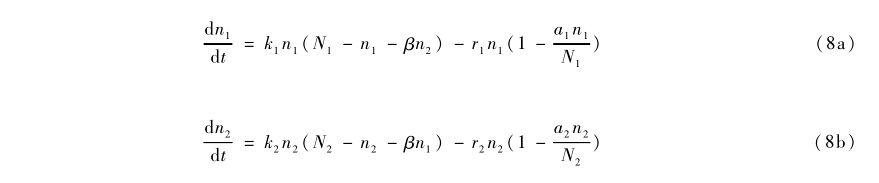 這裏,n1和n2分別是技術(物種)1和2使用者的數量。為簡單起見,我們只討論完全競爭下β=1的最簡單情況。