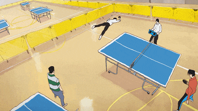 分屏在《心理遊戲》和《四畳半神話大系》中均有出現,但在《乒乓》中最為密集。分屏作為一種能夠將不同時空呈現在同一個畫面中的技法,被湯淺發展到了更高的水平。
