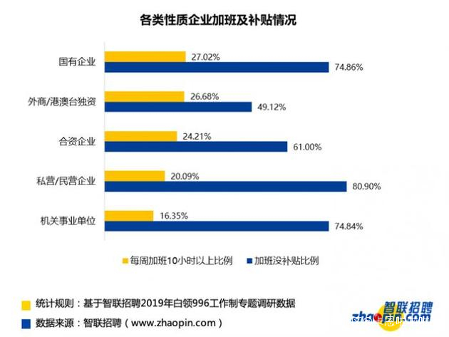 而996/995現象嚴重的汽車製造行業、房地產業的白領們反對聲音倒沒那麼大,房地產行業不管是建房子,還是賣房子,本質上都比較辛苦,在996工作制度萌芽之前,這類人的工作強度本身就較大,因此他們對這一制度敏感度不高;而汽車製造業則具備製造業的普遍特性,通常設有加班費,在各行業的加班補貼調研中,這一行業也是有加班補貼佔比最高的,因此這一行業多數是在通過加班提升收入,是一種你情我願的交換。