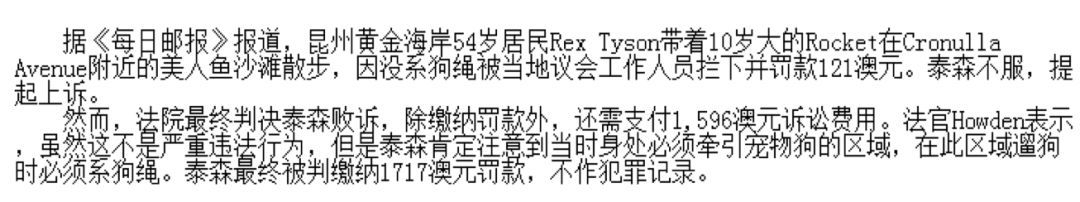 首先澳大利亞遛狗沒帶狗鏈,勒令罰款,共支付1717美元,這在中國是不可思議的
