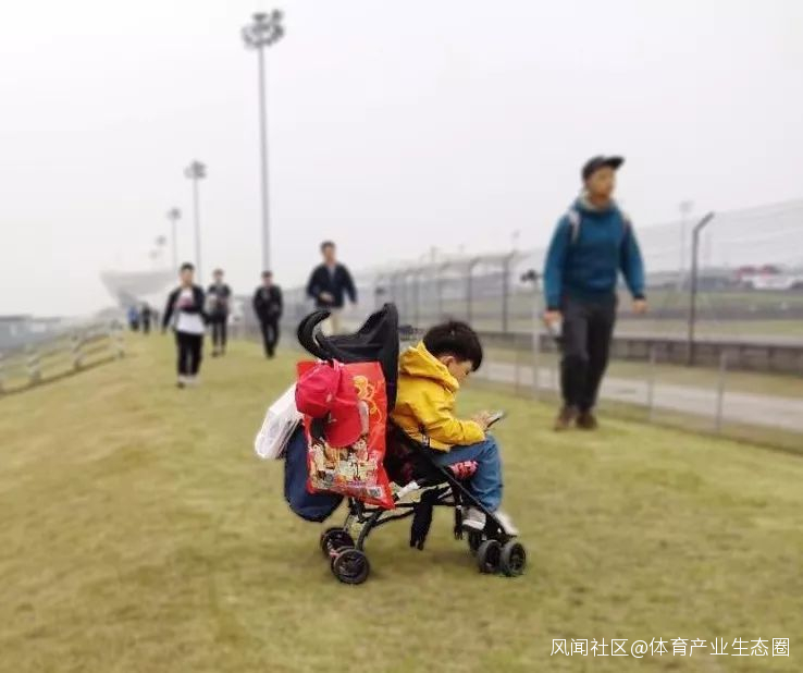 此外,現場看F1很大程度上可以作為一次家庭或者朋友間的出行活動。在現場,看到不少家長帶着孩子一起出來玩的,尤其是爸爸帶着兒子的居多,不信你看這樣一個畫面…