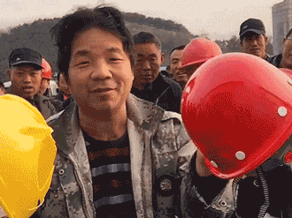 而在最後一則火爆的視頻中,身後的工友卻有很多帶着紅色的安全帽。