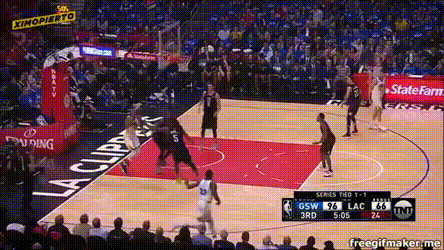 快船防守時習慣性放空底角補位,勇士打這一點。克雷弧頂找到底角伊戈達拉遠射。
