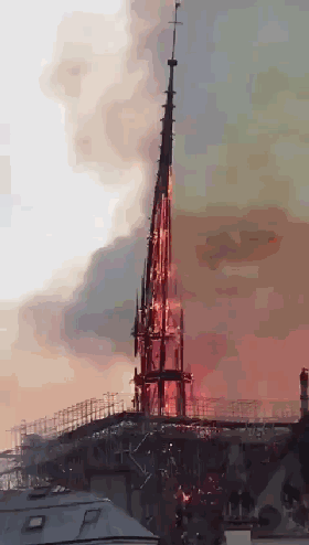 標誌性的尖頂轟然倒下,圍觀的人卻什麼也做不了。