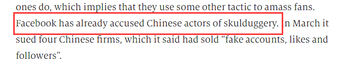 4月20日,《經濟學人》發表了一篇文章,很奇怪中國某些帶V的id在Facebook的粉絲量增長為何如此之快: