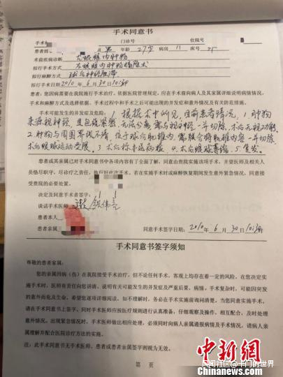 “手術前我們告知了患者和家屬手術可能發生的併發症和危險,其中包括可能會失明,患者和家屬都在《手術同意書》上簽字按印。”崔蕾介紹,手術過程中,“醫生髮現患者情況比較複雜,需要把視神經一併切除,這就意味着左眼會失明。因為患者正在手術枱上,當時只有一名胡姓親屬陪同,所以向他説明病情後,對方也簽署了《手術同意書》,但絕對沒有摘除左眼球”。