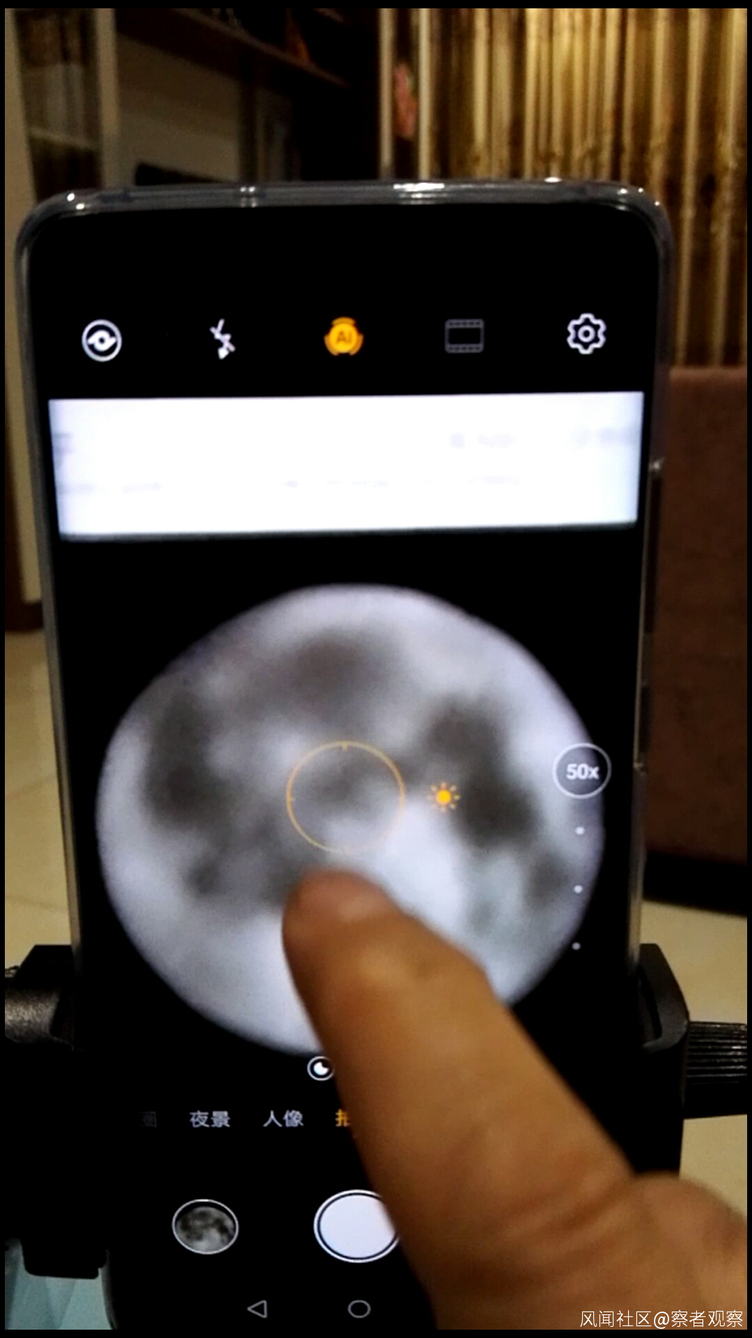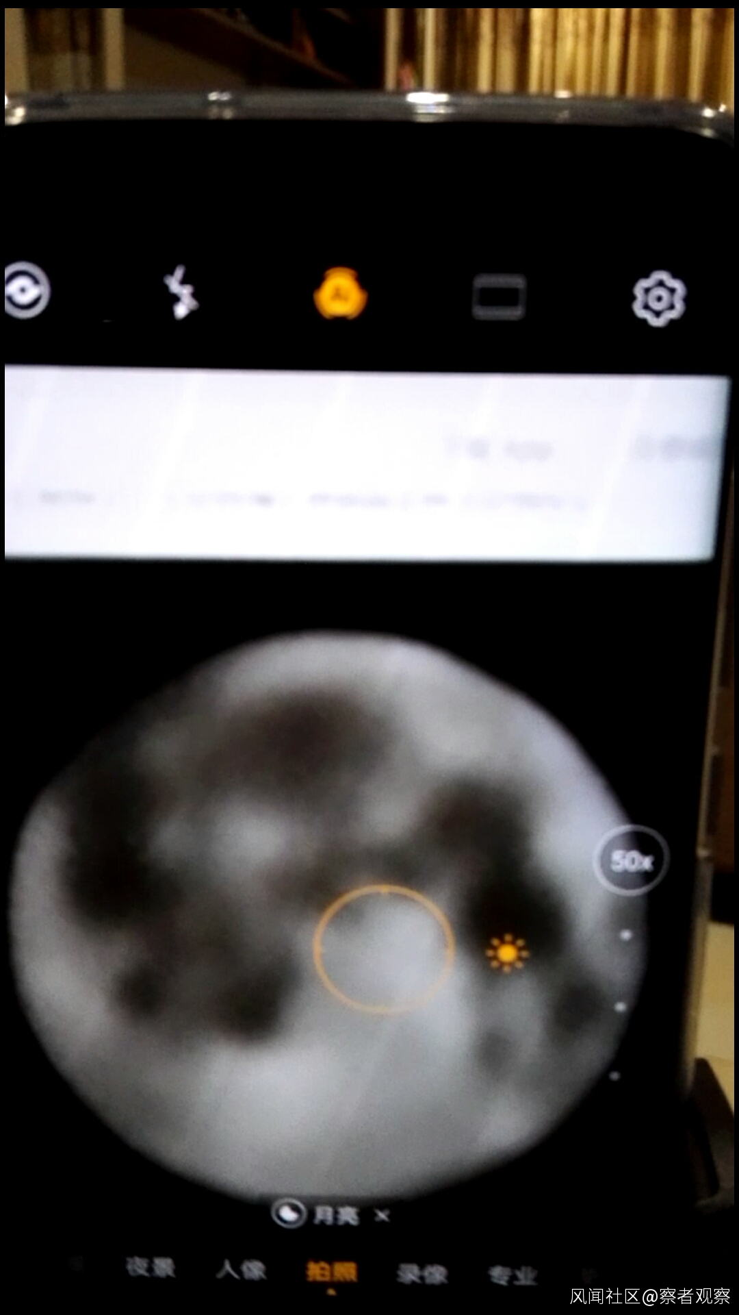 好了,看看我的測試,看視頻截圖,在50倍變焦Ai月亮模式下,無論怎麼對焦,都還原不到模糊化前那樣清晰,Ai改正錯誤就更談不上了。