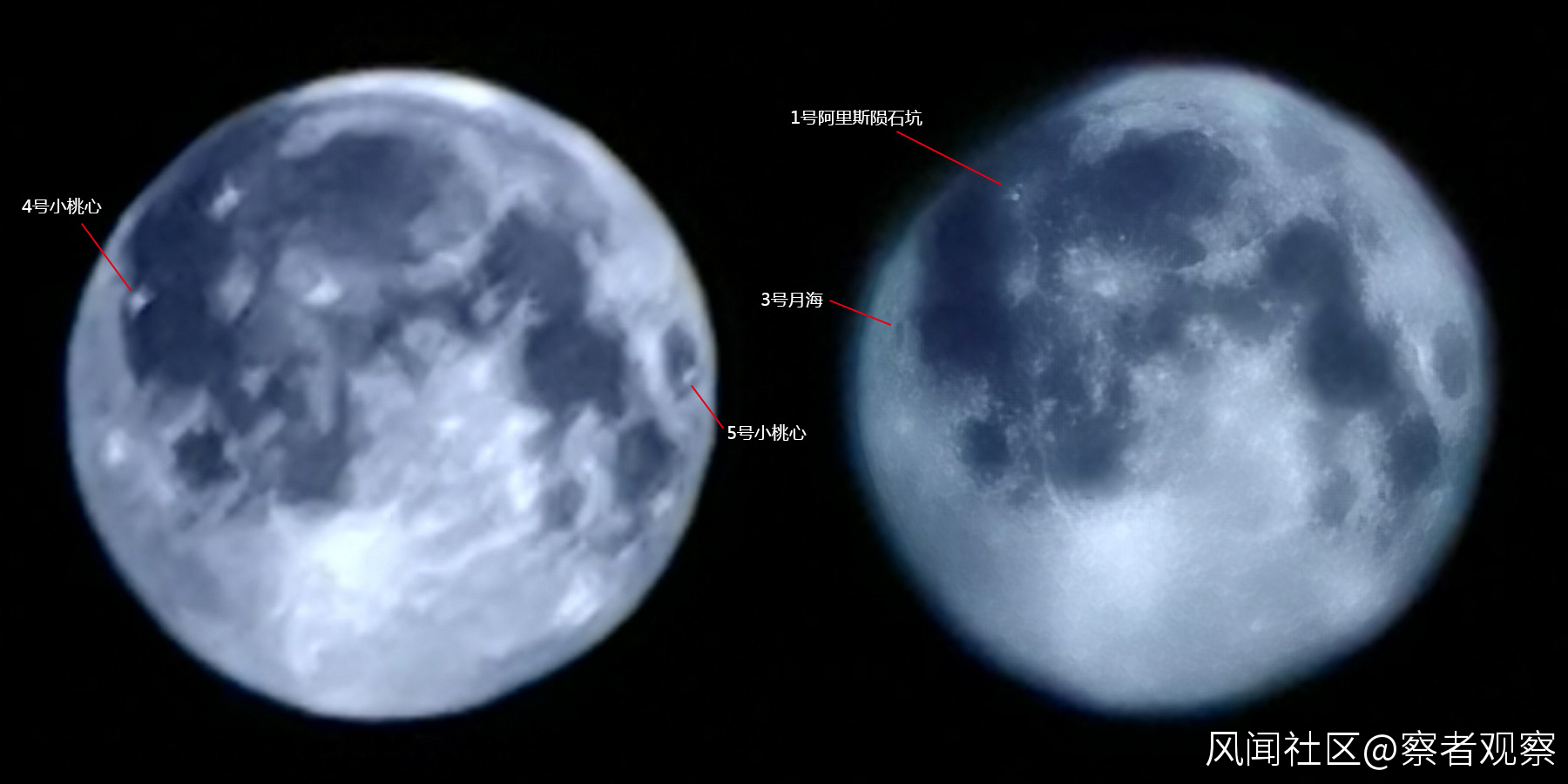 小城的另一個測試是,對五處改動過的高清月亮照片,用月亮模式拍攝,小城拍出來的結果是