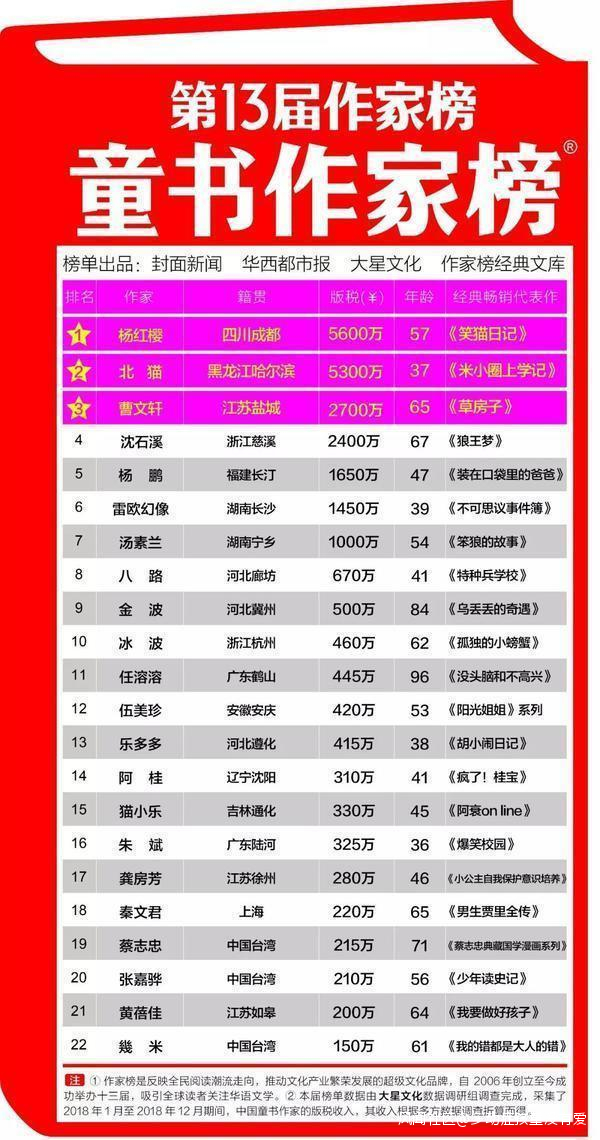 鄭淵潔隨即點名《草房子》《青銅葵花》等書作者、北京大學中文系教授曹文軒以講座的形式變相進入中小學校售書。南都記者注意到,曹文軒以2700萬元版税收入,名列上述童書榜單第三位。