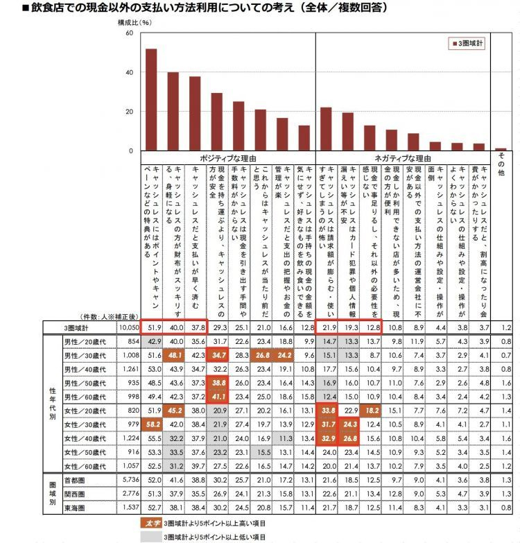 關於在餐飲業消費使用現金以外的支付方式的想法認識(招募生活方式調查提供數據)